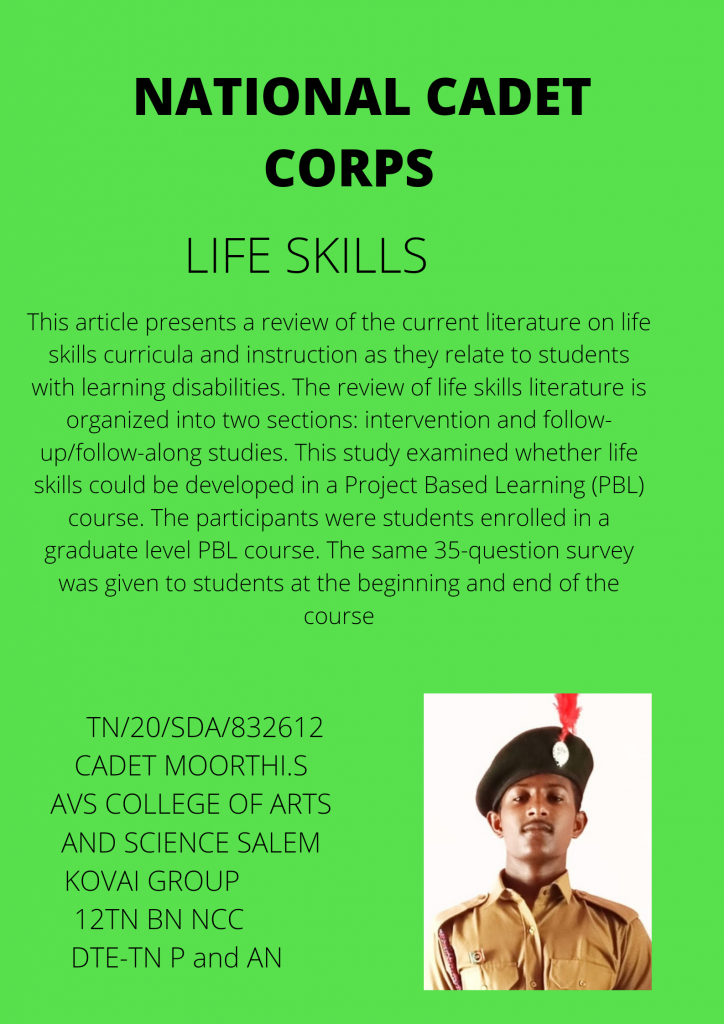 I am Cadet L.Kavitha (TN20SWA831884). SACRED HEART COLLEGE (AUTONOMOUS),12(TN)BN NCC,Selam,Kovai group,DTE :TN P& This is about my ARTICLE.