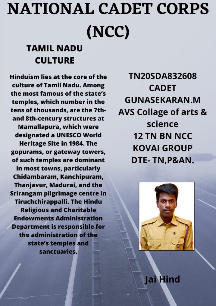 TN20SDA832608 CADET GUNASEKARAN.M AVS COLLAGE OF ARTS AND SCIENCE SALEM 12 TN BN NCC KOVAI GROUP DTE-TN P& AN