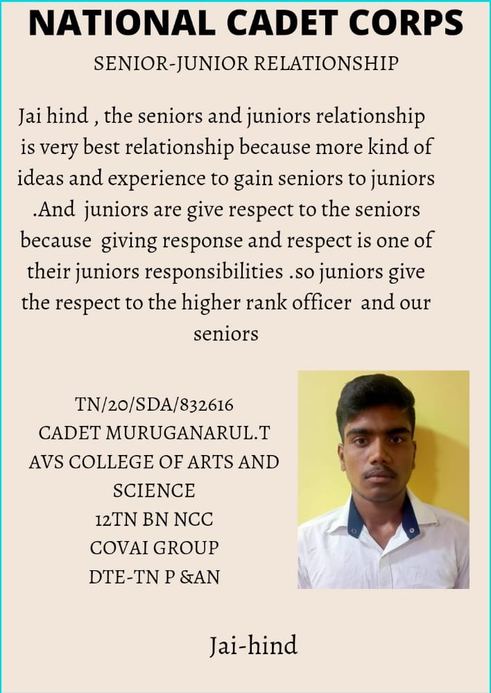 TN/20/SDA/832616 CADET MURUGANARUL.T AVS COLLEGE OF ARTS AND SCIENCE 12TN BN NCC COVAI GROUP DTE-TN P &AN