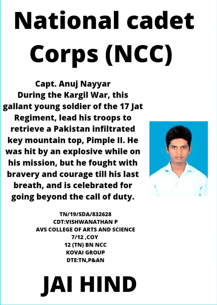 TN/19/SDA/832628 CDT:VISHWANATHAN P AVS COLLEGE OF ARTS AND SCIENCE 7/12 ,COY 12 (TN) BN NCC KOVAI GROUP DTE:TN,P&AN