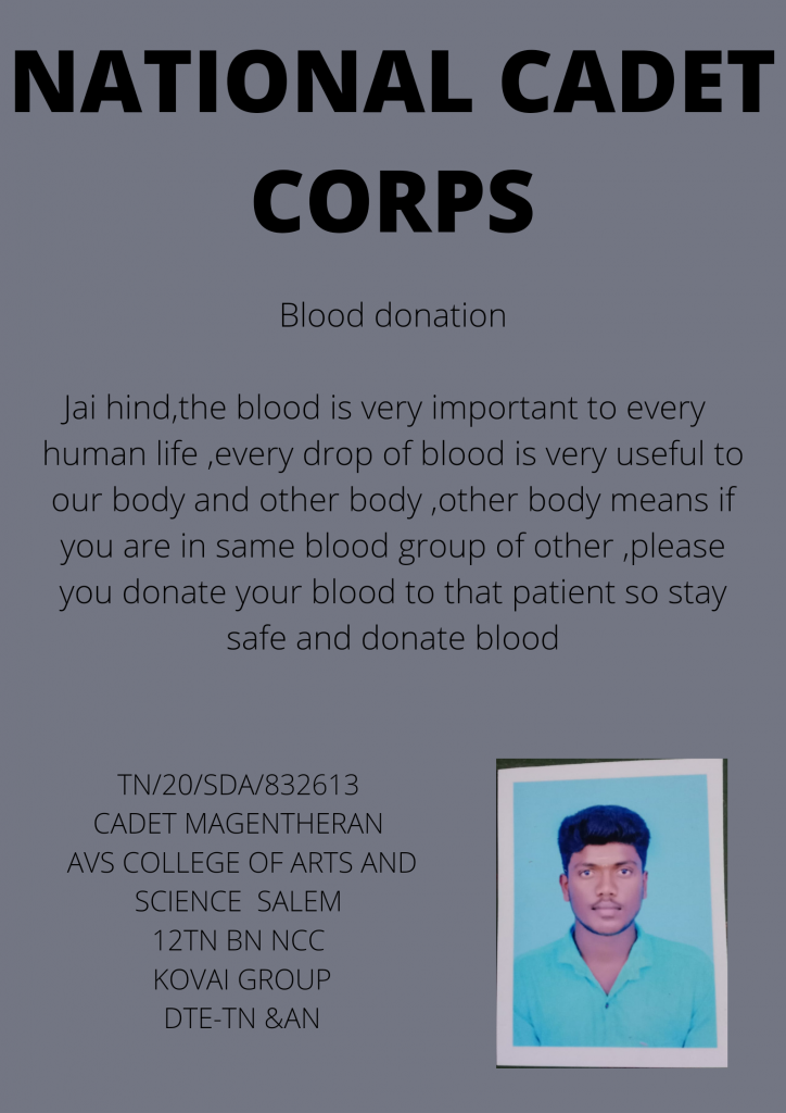 TN/20/SDA/832613 CADET MAHENDIRAN.M AVS COLLEGE OF ARTS AND SCIENCE, SALEM 12 TN BN NCC KOVAI GROUP DTE-TN P & AN