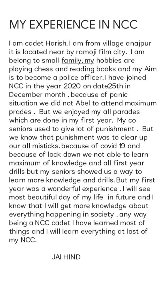 My name is cadet harish iam studing degree 1 year in pragthi mahavidyalaya college my aim to becom a police officer