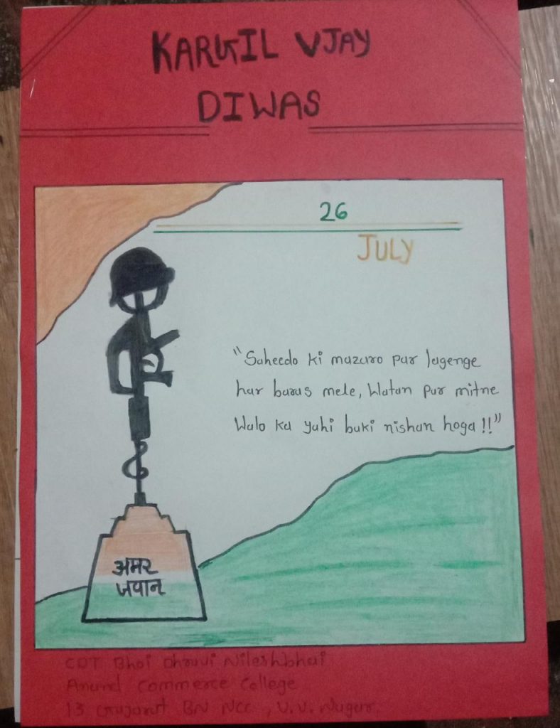 Slogan on kargil Vijay diwas Cdt Anna Grace Oliveira Regimental no :GA/19/SWA/595192 C I Goa Girls BN belgaum grp NCC Carmel College of Arts, Science and commerce Nuvem Goa