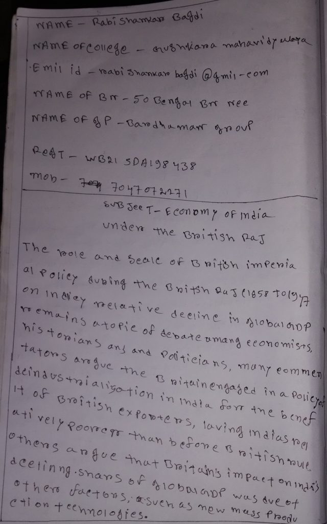 ECONOMY OF INDIA UNDER THE BRITISH RAJ