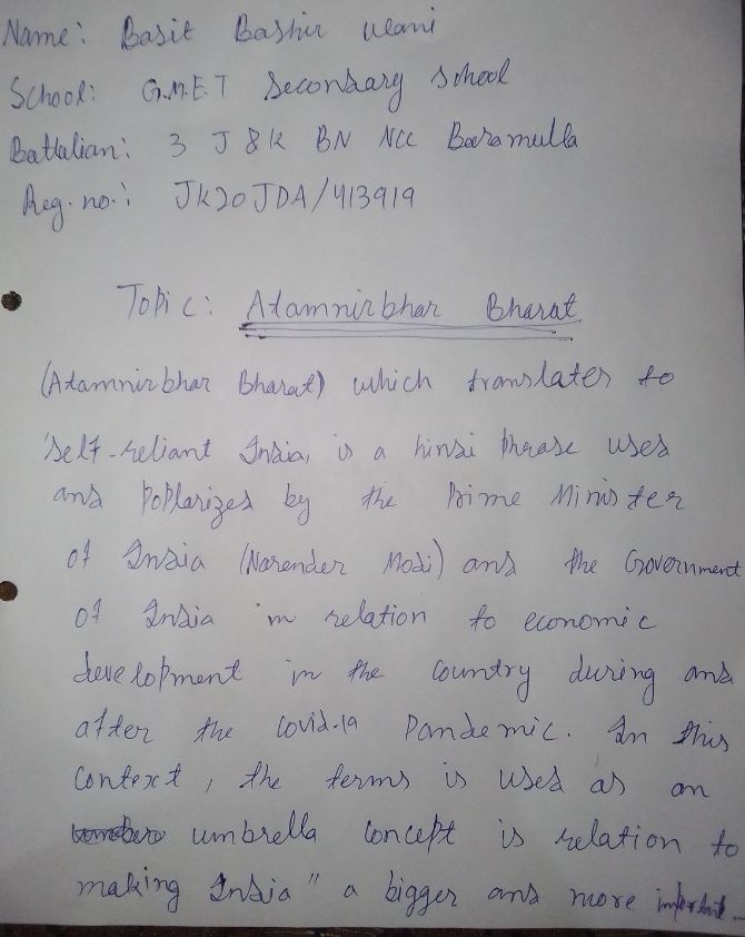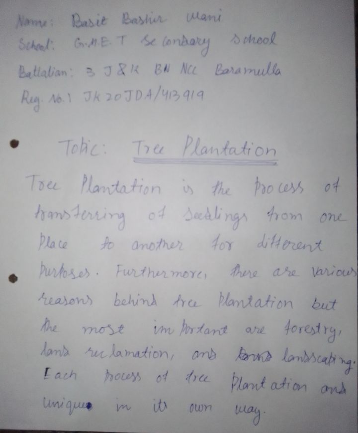 Name:Basit Bashir Wani School:GMET Secondary School Battalian:3 J&k BN NCC Baramulla Reg. No. :JK20JDA/413919