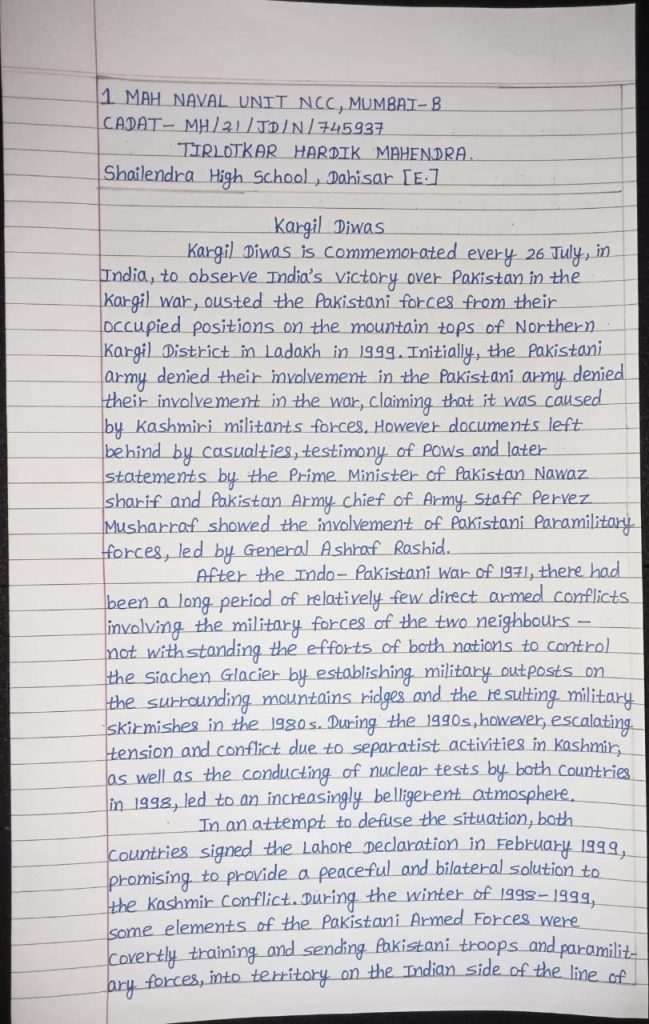 Name – Tanish Supat School – St. Joseph High School (Wadala) Unit Name – One Mah Naval Unit