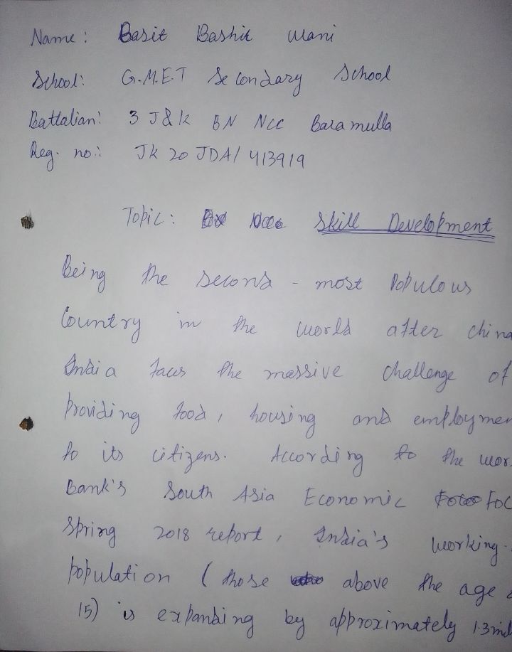Name: Basit Bashir Wani School: GMET Secondary School Battalian: 3 Jk BN NCC Baramulla Reg. No. : Jk20JDA/413919