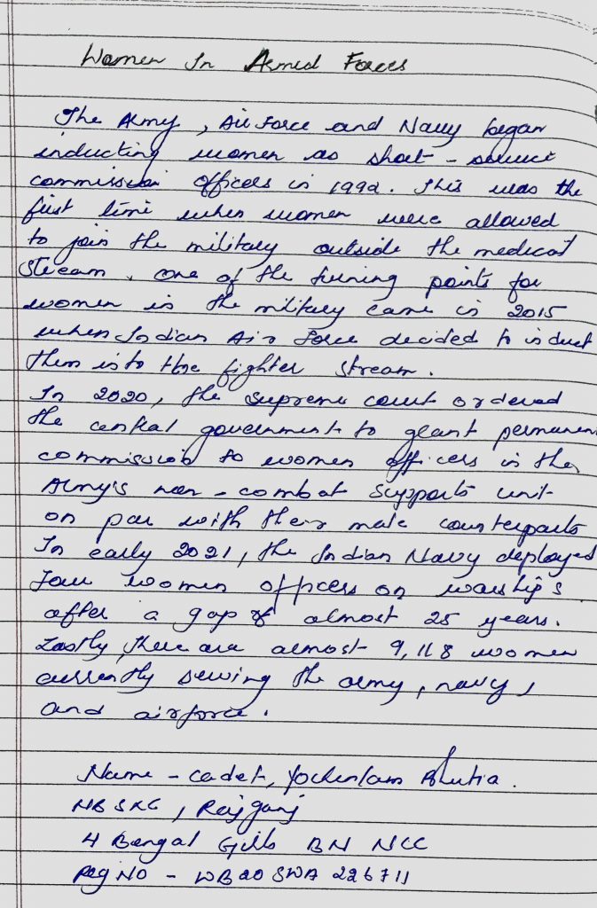 Cadet:Jannat Parveen Regimental no:WB20SWA226682