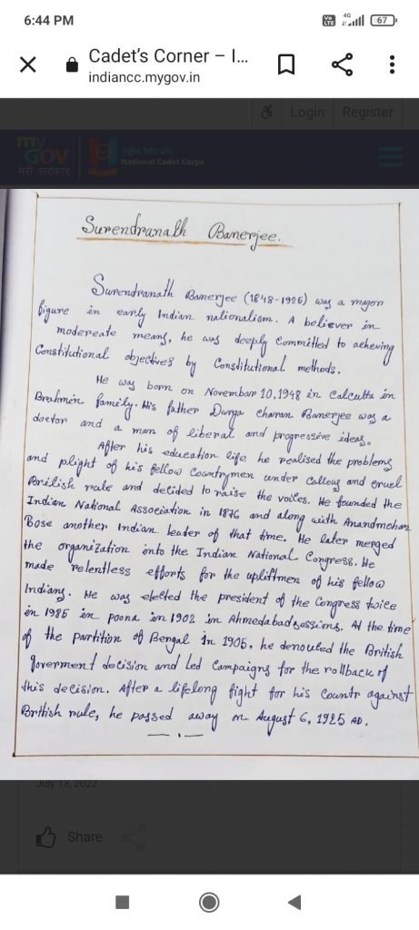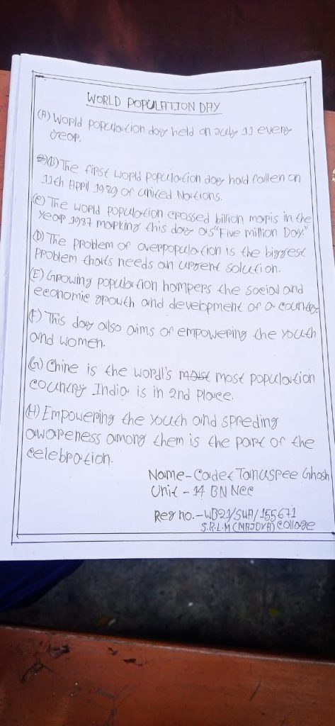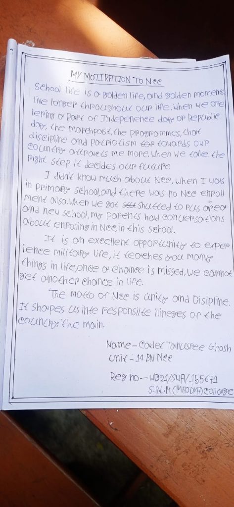 CADET Tanusree Ghosh 14 BN NCC WB21/SWA/155671 S.R.L.M(Majdya)Collage