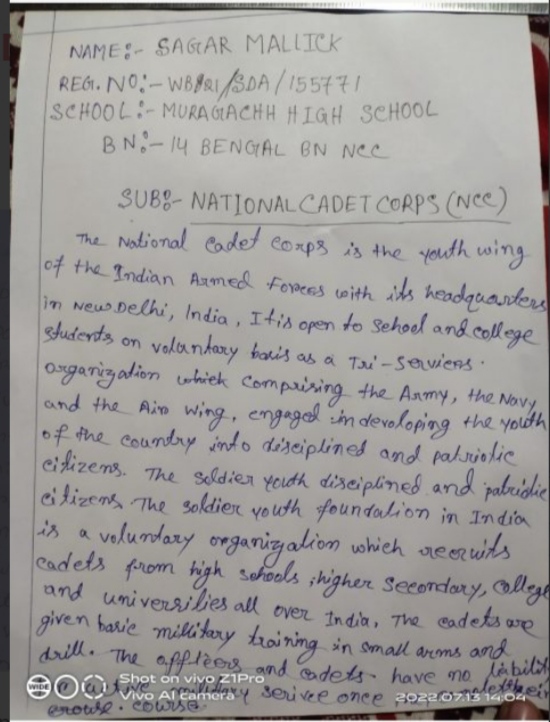 DEBOGRAM S.A VIDYAPITH 14 BENGAL BN NCC MURAGACHHA NADIA