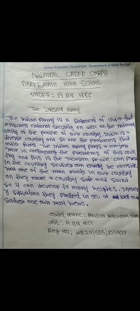 This is Cdt. Akash Prasad of HMC coy 43Bengal Bn Ncc.