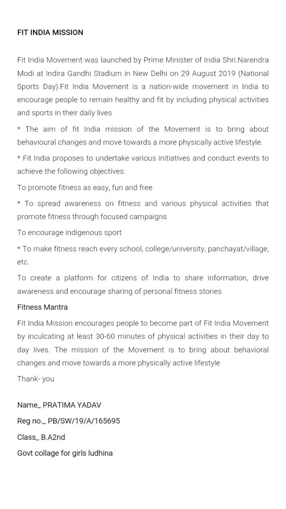 3 PB girls BN NCC ludhina I m Pratima Yadav. I wrote about fit India mission.
