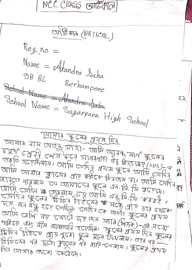 NAME -- CDT ATANDRA SAHA SCHOOL NAME-- SAGARPARA HIGH SCHOOL UNIT-- 9 BENGAL BN NCC GROUP-- KALYNI GP DTE- WB &SIKKIM DTE