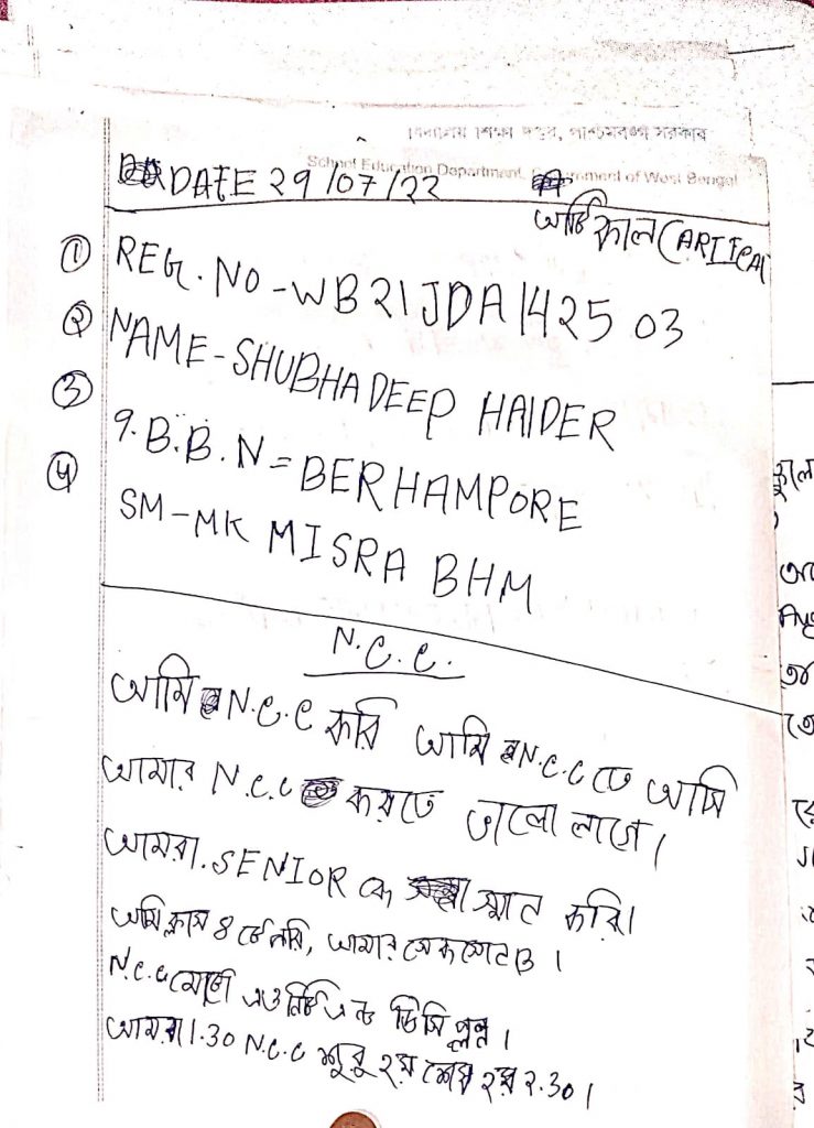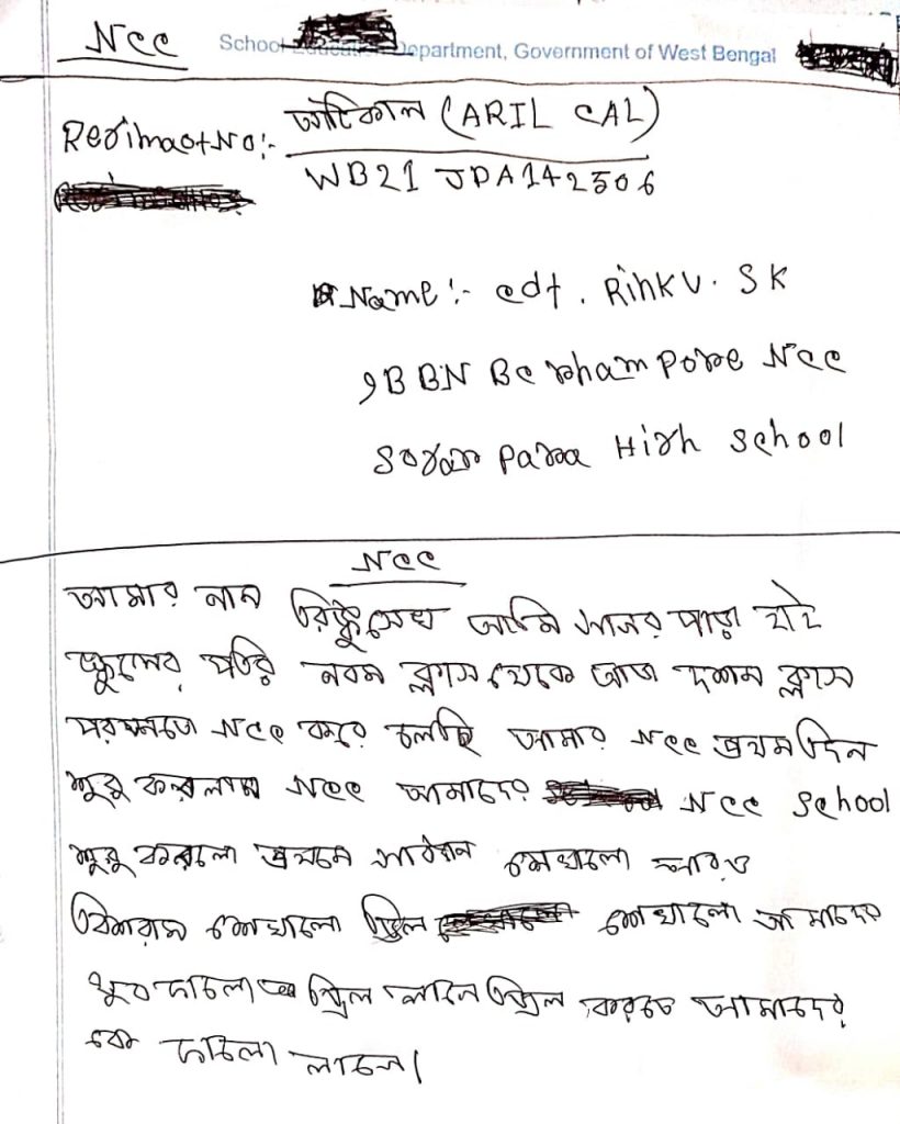 WB21SWA153062; CDT SANCHITA SIKDER, DB COLLEGE, UNDER 6 BENGAL BATTALION