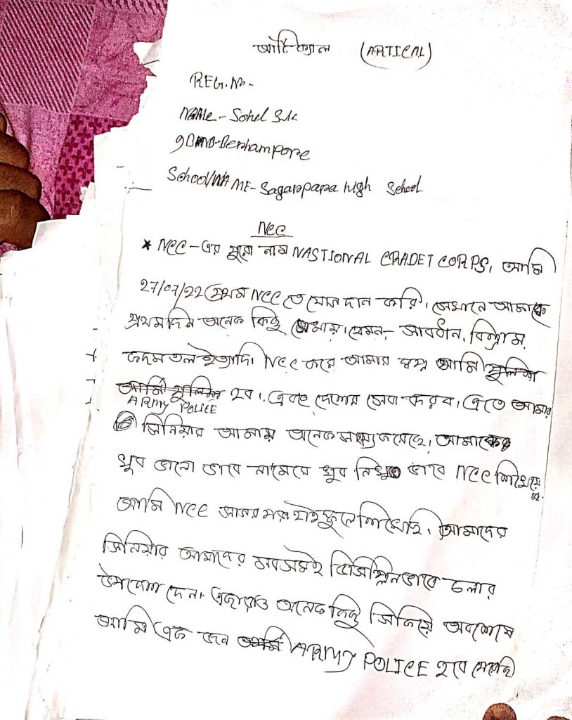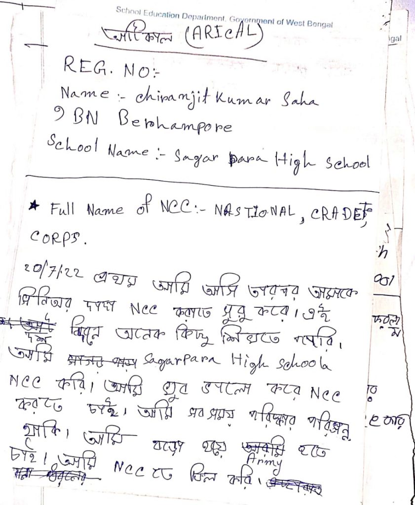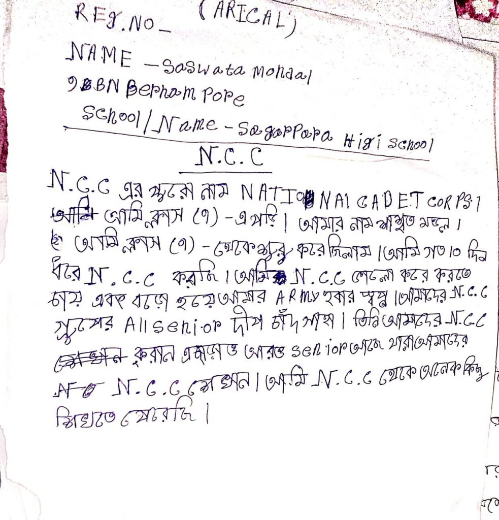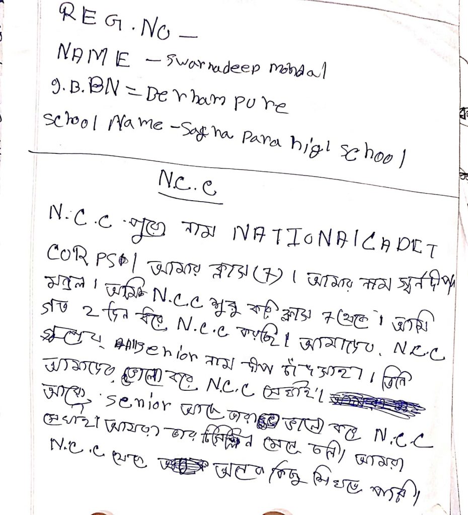 WB21SWA153007; CDT SANCHITA BALA, DB COLLEGE, UNDER 6 BENGAL BATTALION