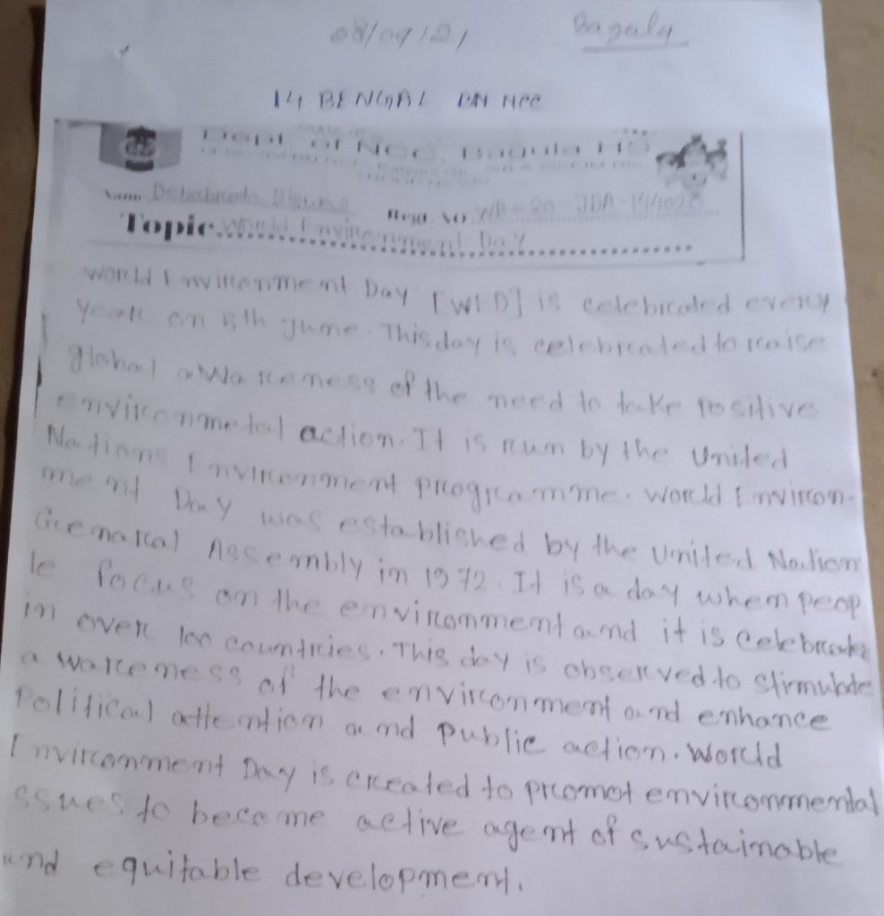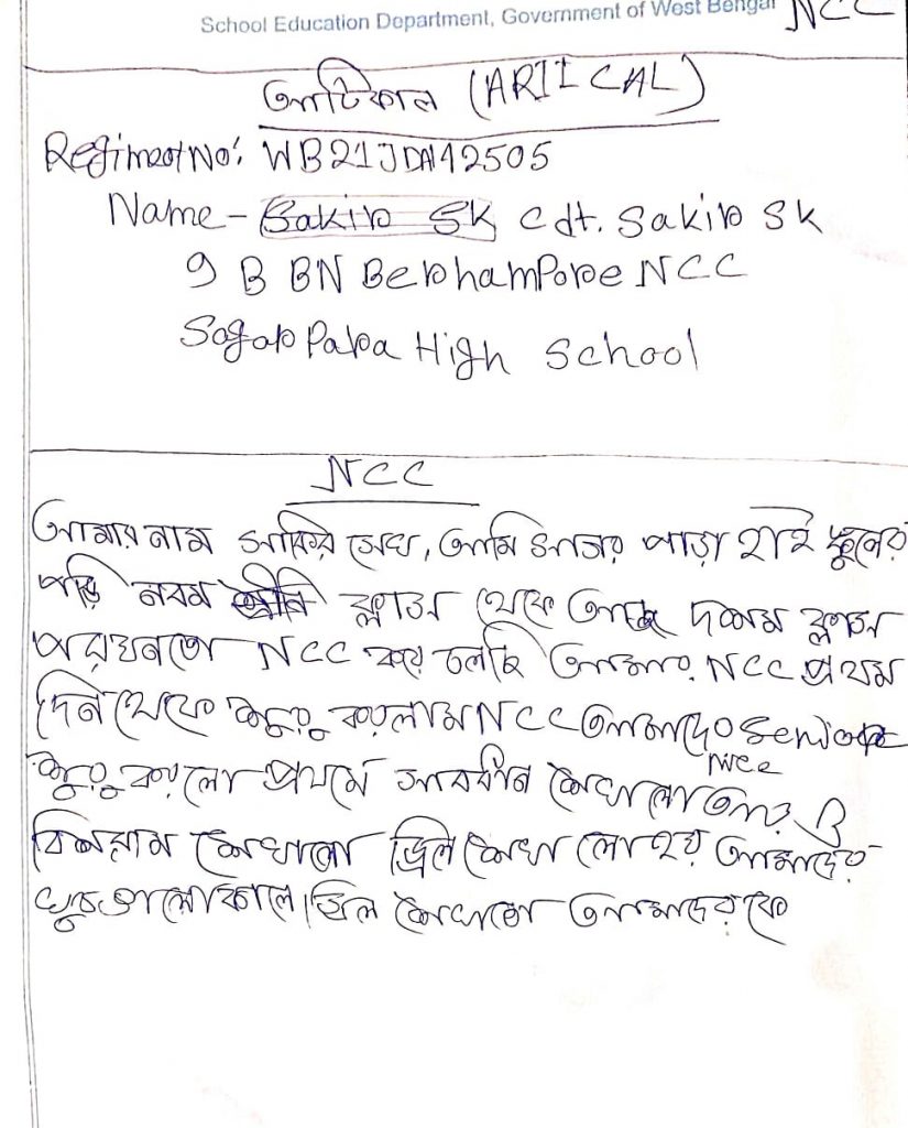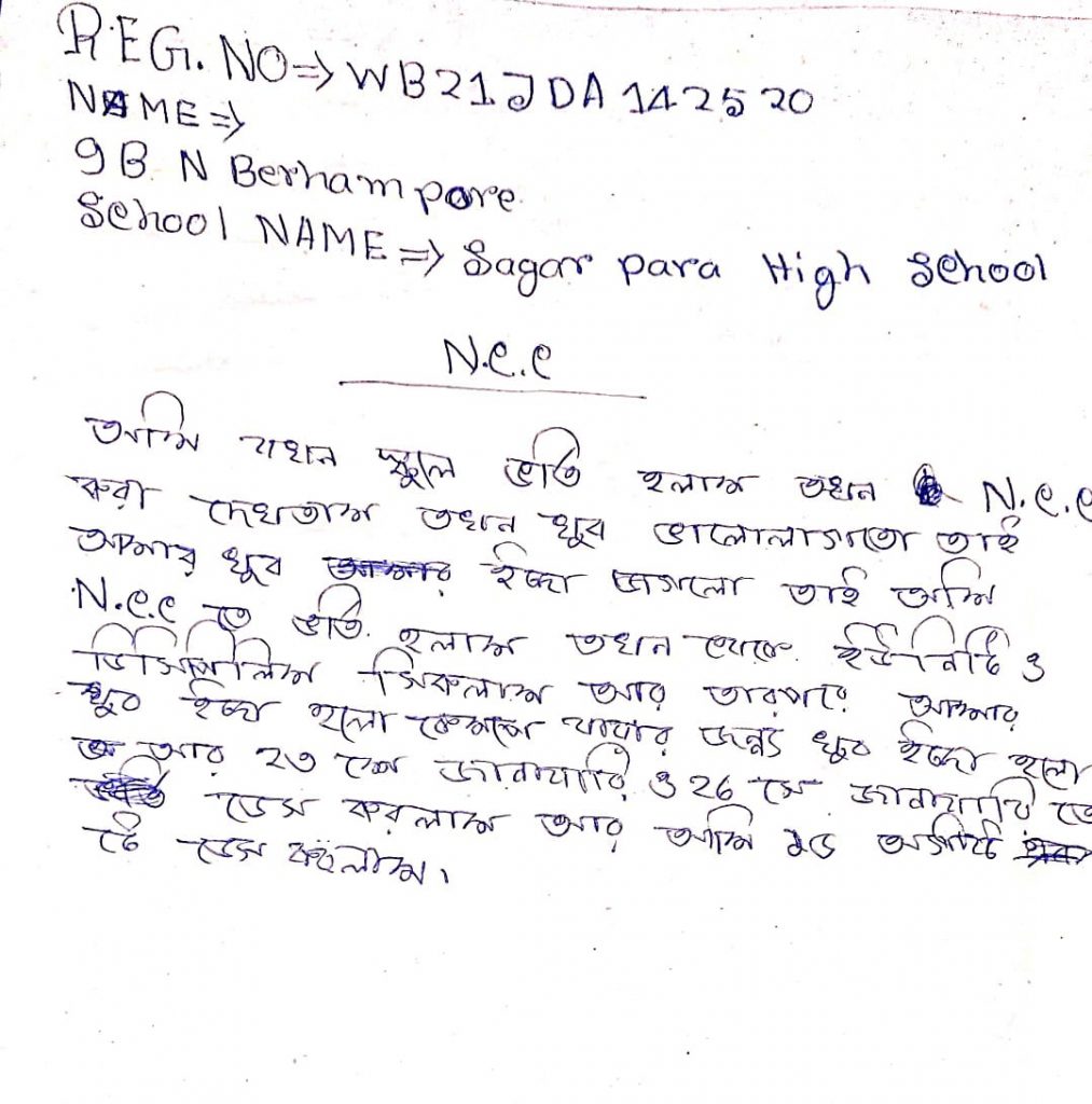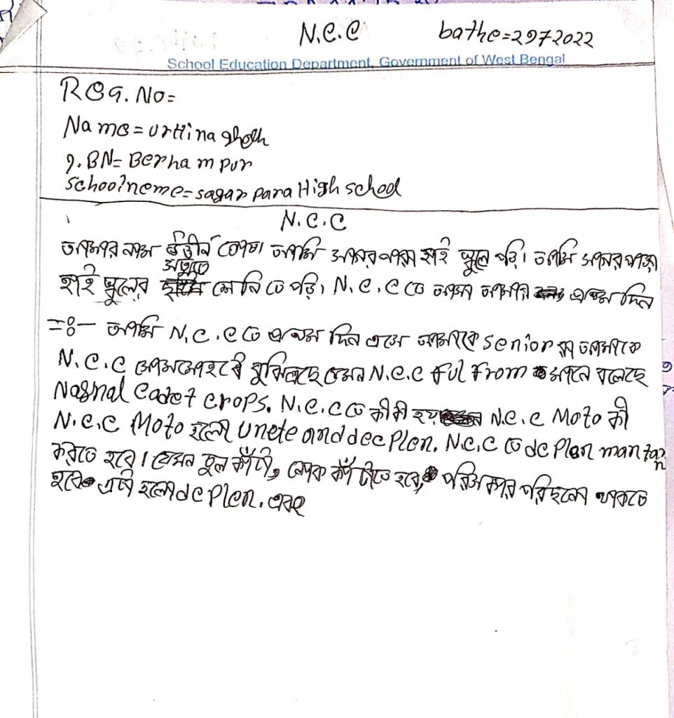 WB21SWA153007; CDT SANCHITA BALA, DB COLLEGE, UNDER 6 BENGAL BATTALION
