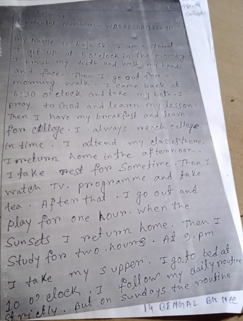 Name - Riyag SK Reg.no - WB21SDA103205 Rank - Cadet