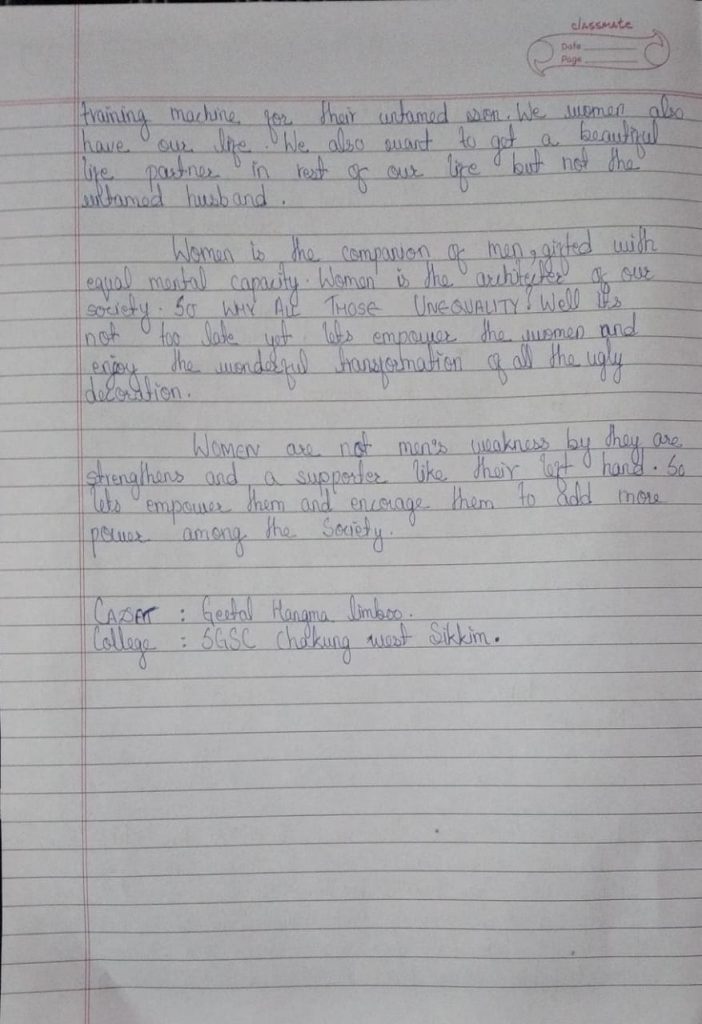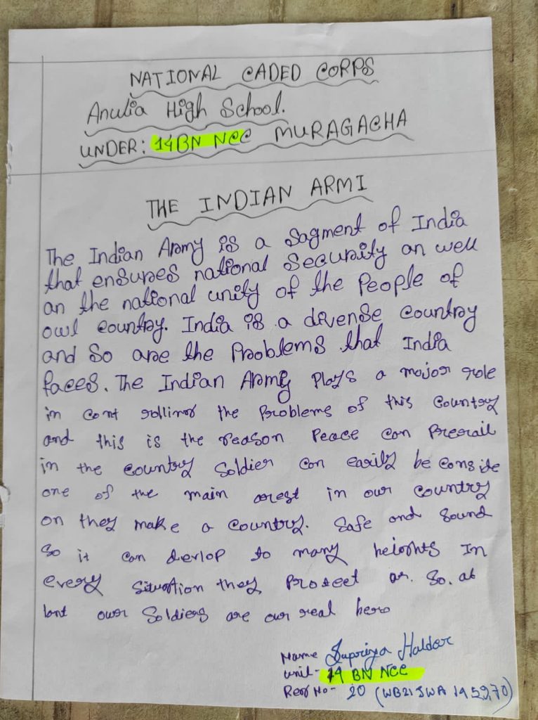 My name is LCPL Papiya Roy, From- A.B.N Seal college