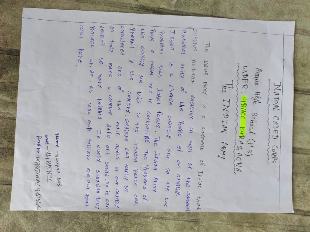 My name is Rimita Sanpui cadit of 6 Bengal Batilion.