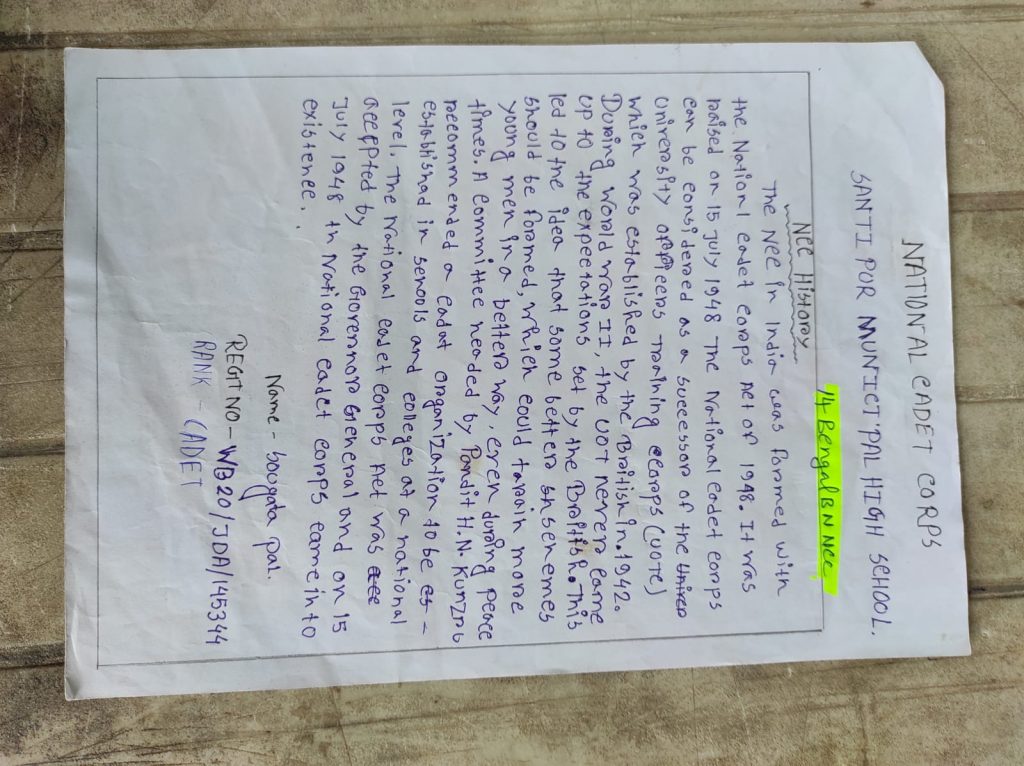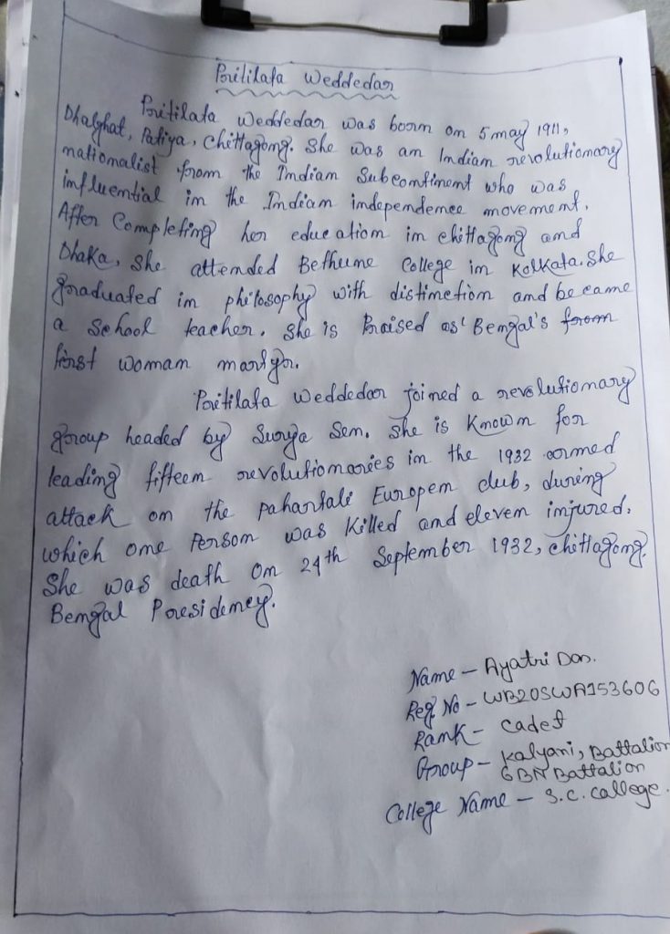 My name is Rimita Sanpui cadit of 6Bengal Batilion.