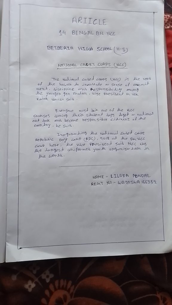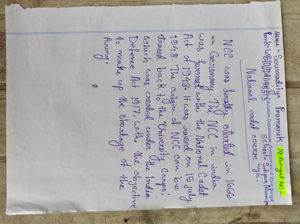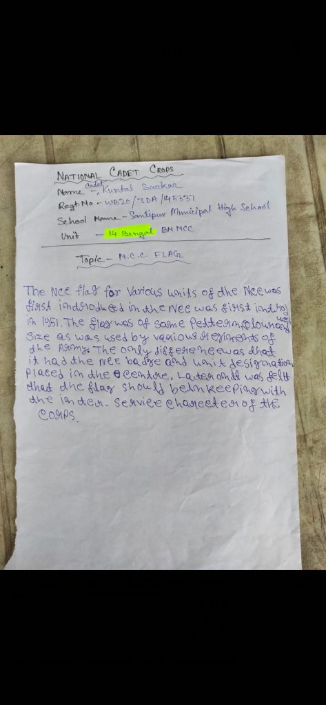 NAME RABISHAKAR BAGDI NAME OF GP BARDHAMAN GROUP NAME OF BN-50BENGAI BN NCC REGT NO WB21SDA198438 GUSHKARA MAHAVIDYA