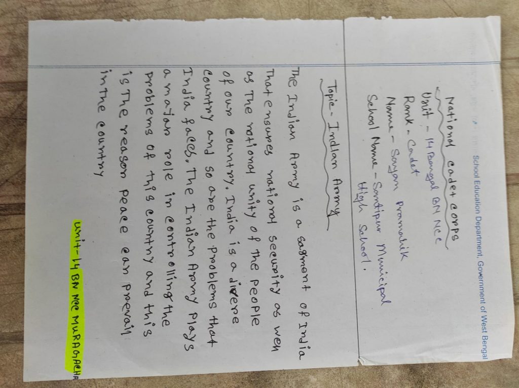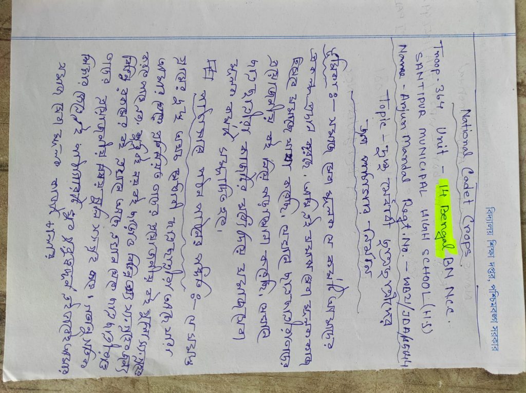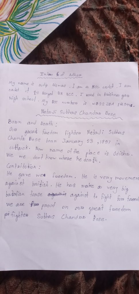 My name is Sudip Biswas .I read in Krisha gar High School. I am a NCC cadet. I cadet of 14 Bengal BN NCC. My NCC NUMBER IS WB22JDA 189441.