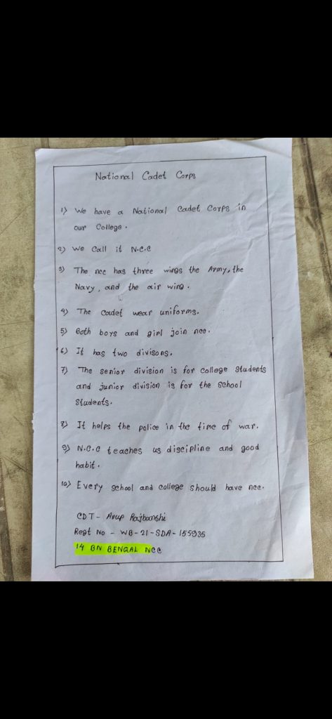 Mubaraque alam Ncc d coy Siliguri college of commerce 16 bn battalion Topic - personality development through ncc