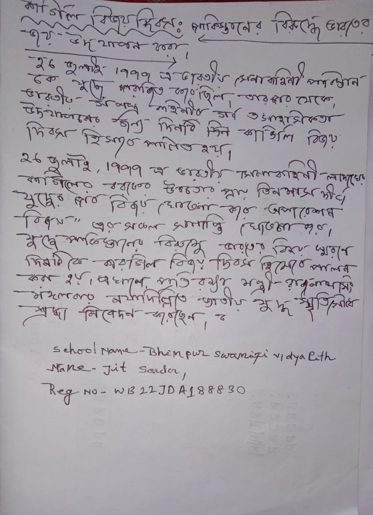 I am a jda cadet of 14 Bengal BN NCC. My Regimental number and name is WB 22jda188830, jit sardar. My school name is Bhimpur Swamiji Vidyapith.
