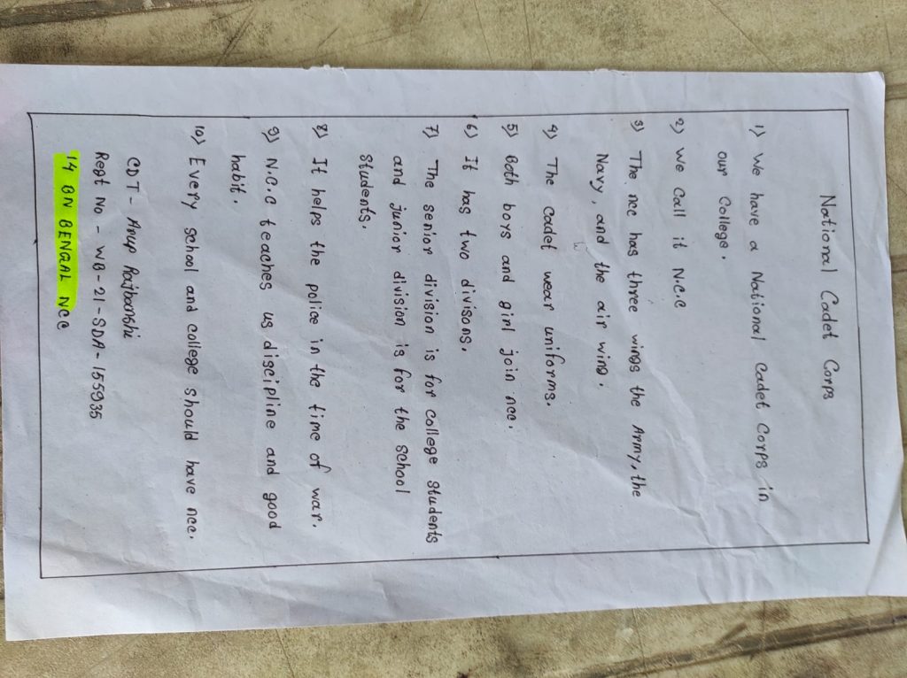 Cadet- Aryan pradhan Silguri college of Commerce D "COY" 16 Bengal BN NCC