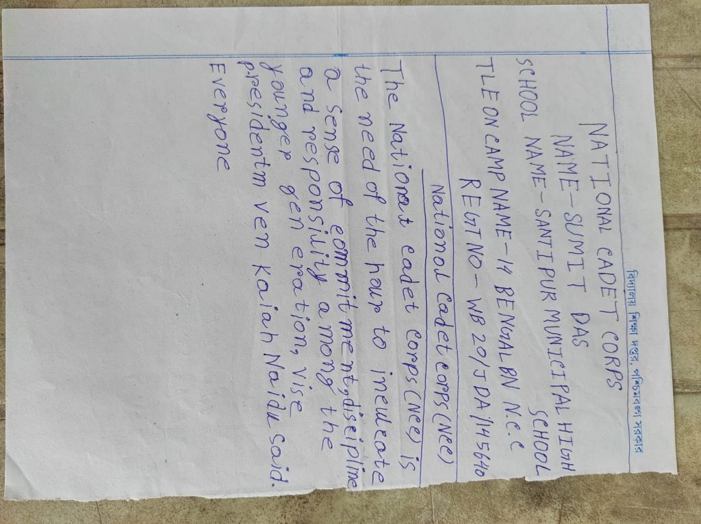 I am a NCC jda cadet of 14 Bengal BN NCC. My Regimental number and name is WB 22jda188819, Biswajit Pramanik. My school name is Bhimpur Swamiji Vidyapith.