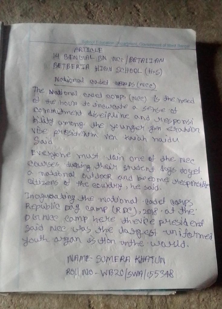 Wb21swa120406 Sujata Routh Unit-1 Bangal bn ncc Bongobashi morning college West Bengal Sikkim kol-c