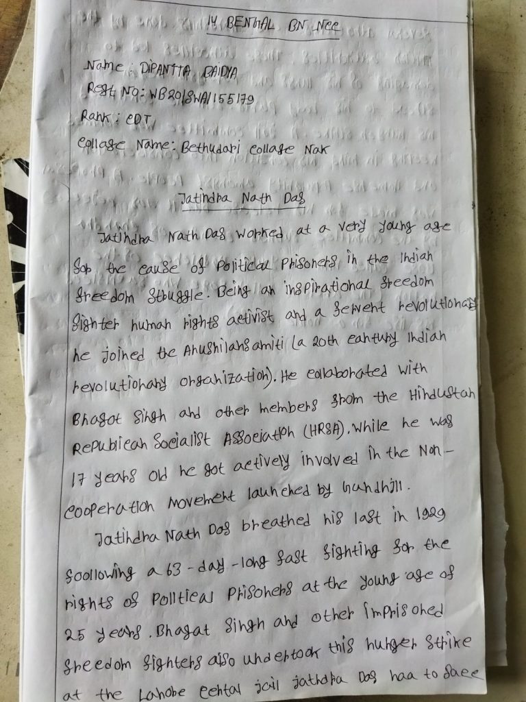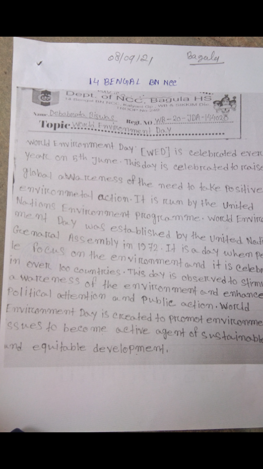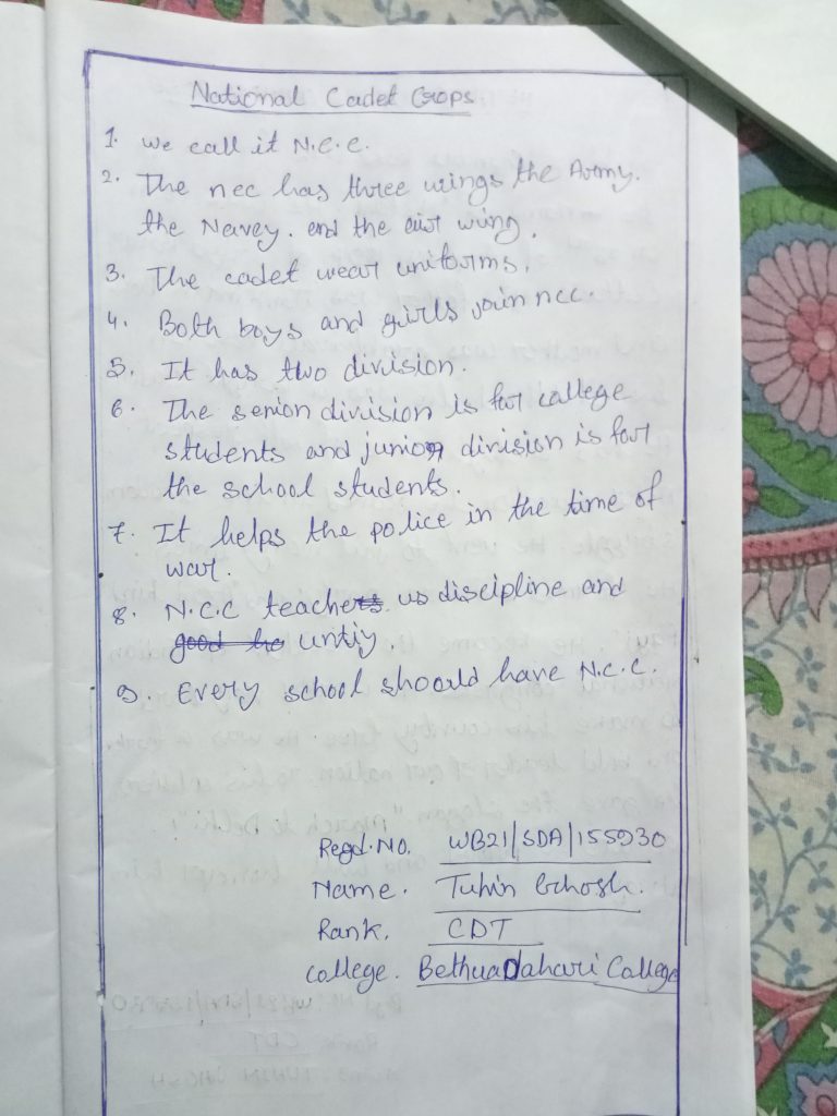 I am cadet Dipanita Baidya from 14 BN NCC MURAGACHHA REGT NO-WB20/SWA/155179