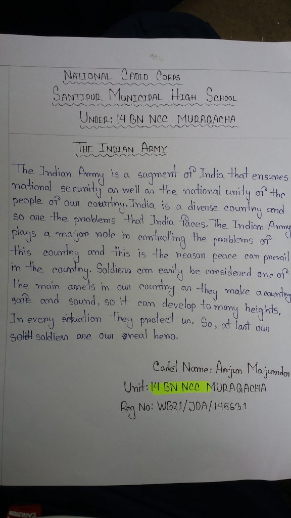 I am a NCC cadet 14 Bengal BN NCC Bhaluka high school Jay Hind