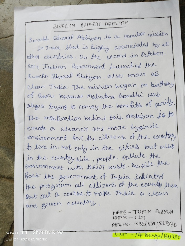 CDT-SNEHA ROY REG-WB21SWA120505 COLLEGE BBEC COL-(C) (WB) SIKKIM DIRECTOR I does swachh Bharat mission