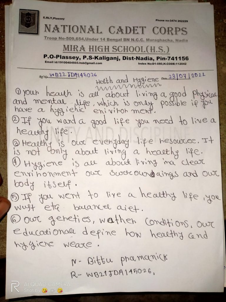 Reg no- WB20SWA198043, CDT-SAMPRITI DEY, COLLEGE- Visva Bharati, Battalion -50Bengal NCC