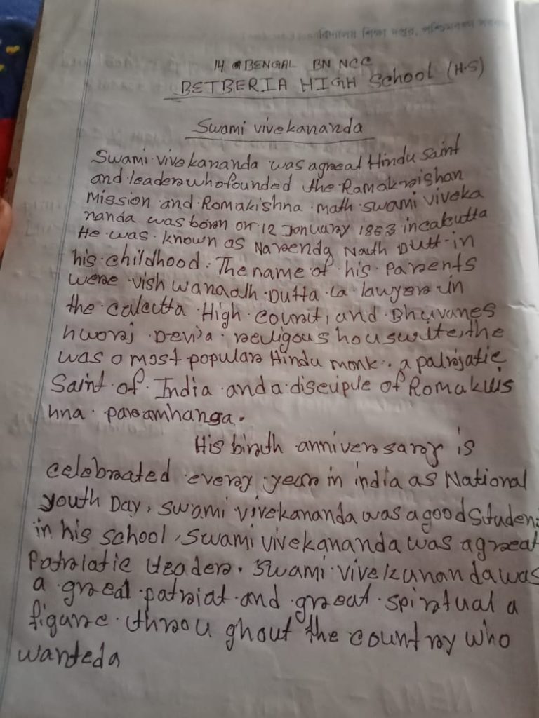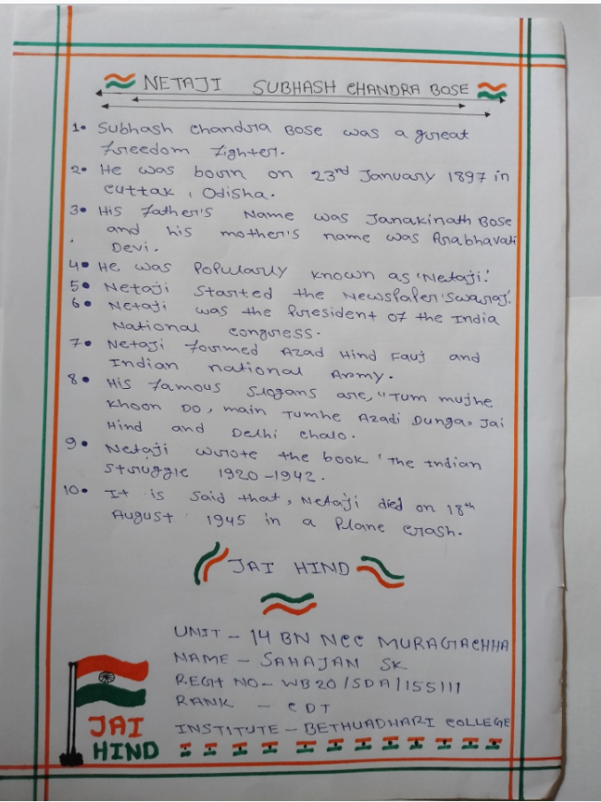 A am cadet Sahajan sk from 14 BN NCC MURAGACHHA REGT NO-WB20/ SDA /155111