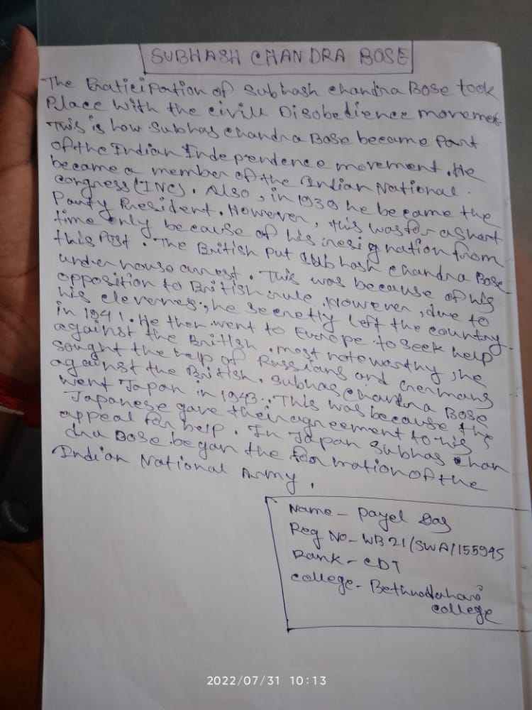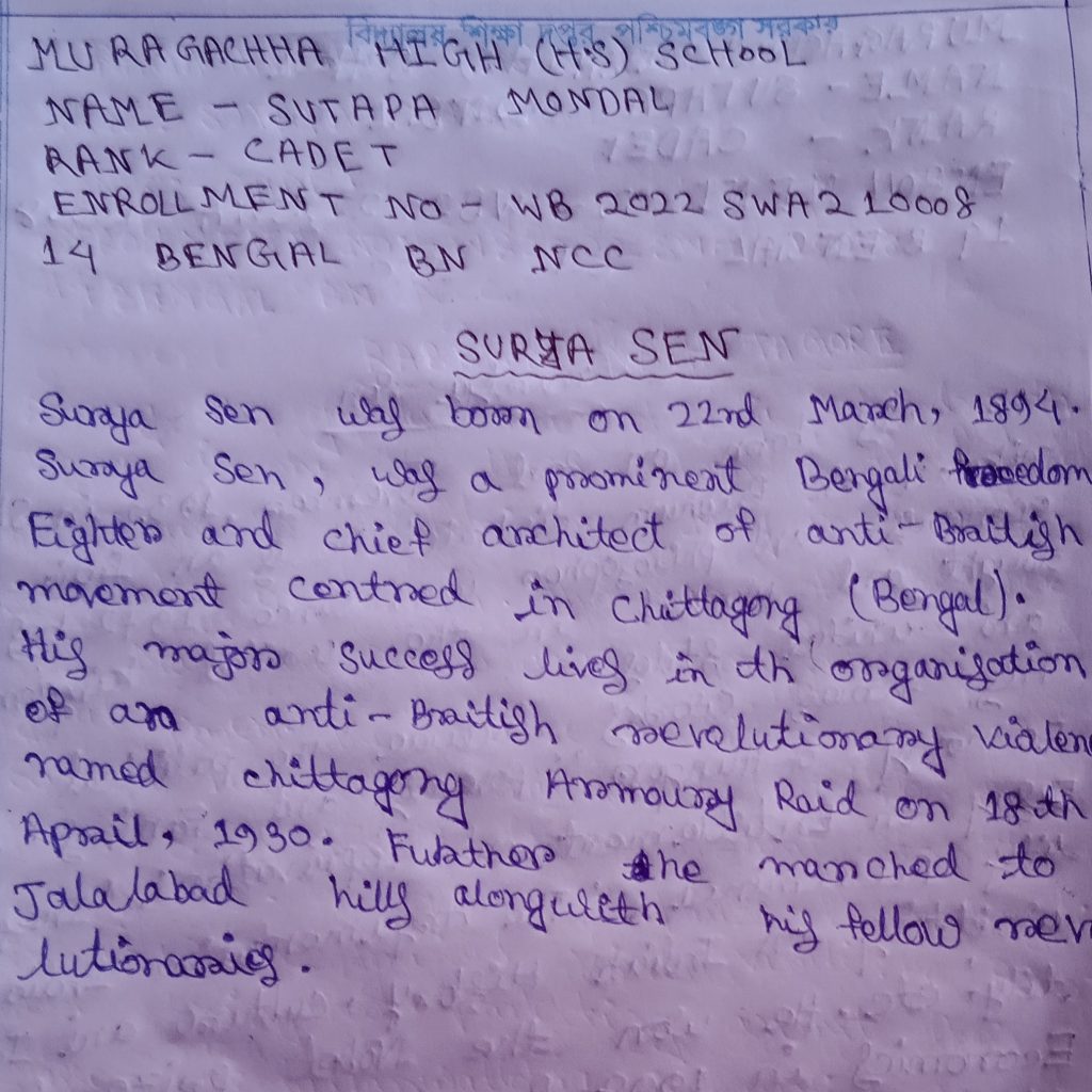 I am a NCC jwa cadet of 14 Bengal BN NCC. My Regimental number and name is WB 22jwa188839 , Bipasha Tarafder. My school name is Bhimpur Swamiji Vidyapith.