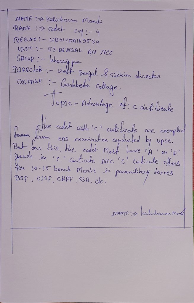 WB21SDA15263p; CDT SUKDEV MONDAL, DB COLLEGE, UNDER 6 BENGAL BATTALION
