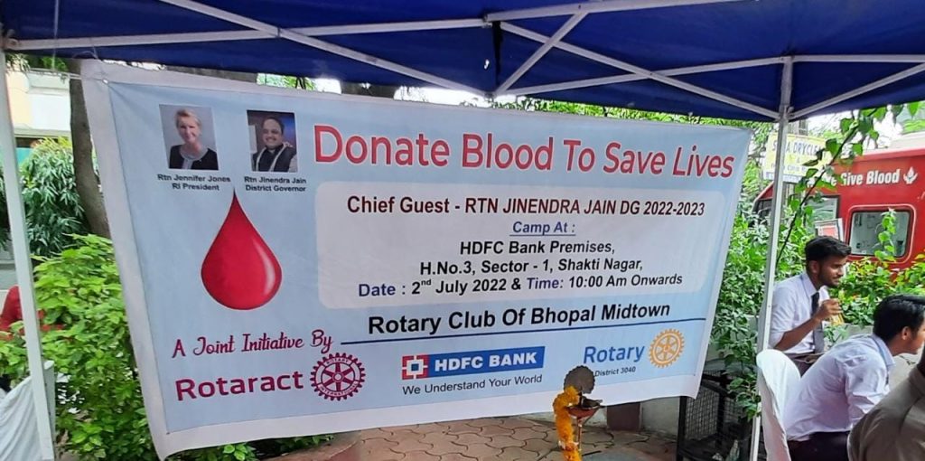 BSSS NCC of 4 MP BN Bhopal Group MP & CG DTE came forward for blood donation which was organised by HDFC Bank, Rotary club Bhopal and Rotaract on 2nd July 2022. This blood drive helped to alleviate the blood shortage for the thalassemia patients.