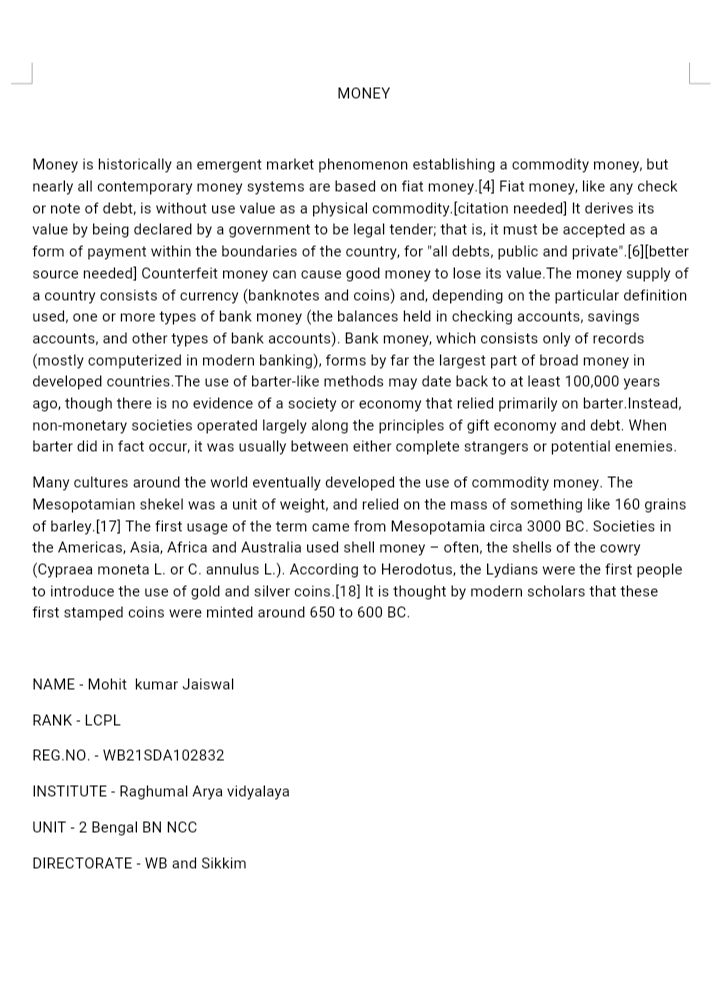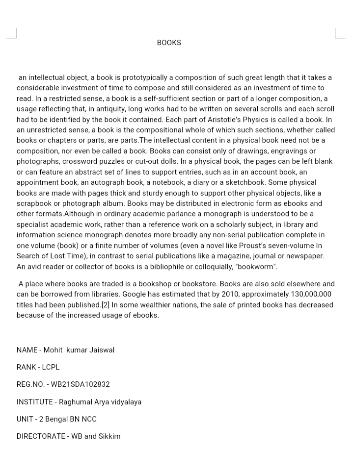 NAME - Mohit kumar Jaiswal RANK - LCPL REG.NO. - WB21SDA102832 INSTITUTE - Raghumal Arya vidyalaya UNIT - 2 Bengal BN NCC DIRECTORATE - WB and Sikkim