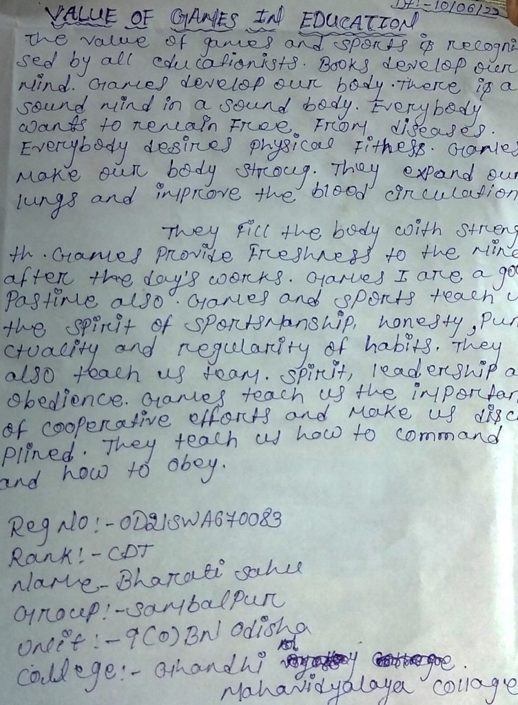 Cadet Lipsa Biswal OD21SWA678099 Govt auto college 9(O) BN NCC Odisha directorate