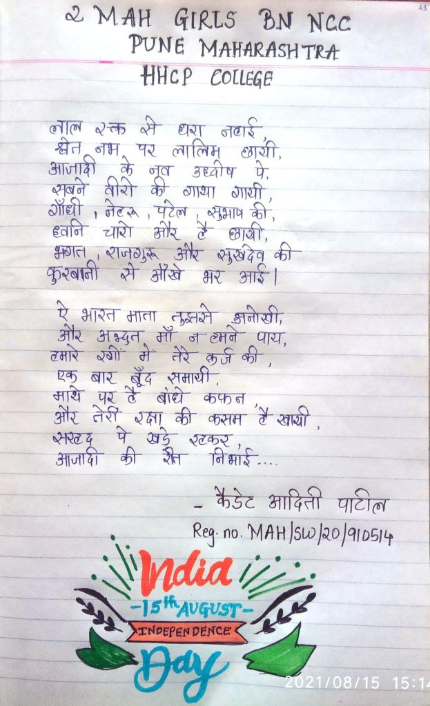 Jai hind As part of 75th Indipendent Day Celebrations, Cadets of 3 HAR (G) BN NCC HISAR , from FC College for Women ,Hisar undertook flag hoisting Ceremony.