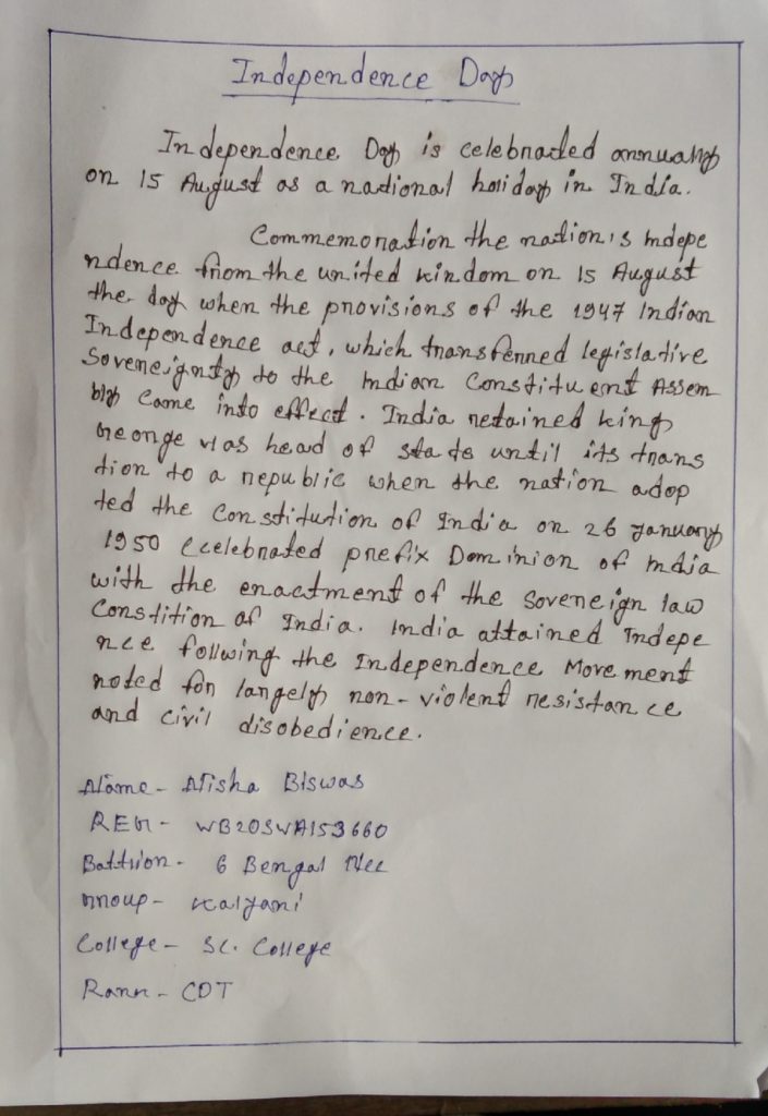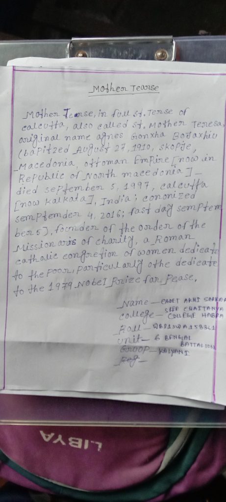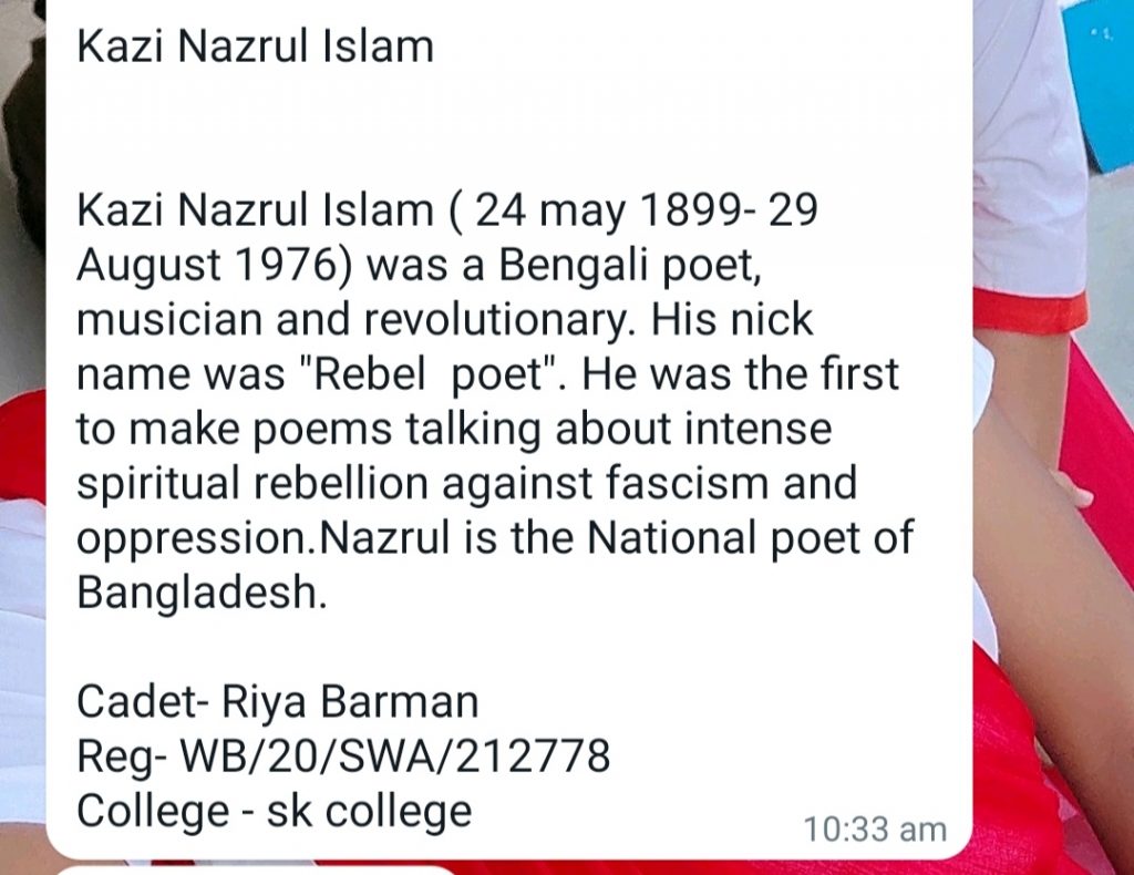 NAME - CDT SK ANIS ALI RAG NO - WBSD/21/A174083 UNIT - 55 BENGAL BN NCC TAMLUK GROUP - KHARAGPUR DIRECTOR - WEST BENGAL AND SIKKIM COLLEGE - TAMRALIPTA MAHAVIDYALAYA