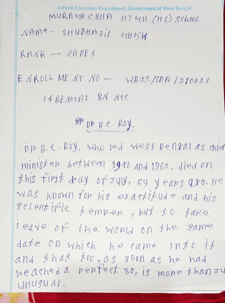 Akash Ghosh WB20SDA197784 sn college 50 BN NCC BURDWAN GROUP WB SIKIM DTE