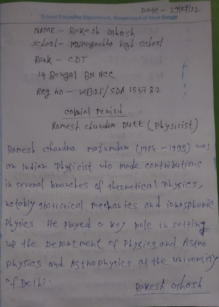 NAME- SOUMYADIP HALDER RANK-CDT, REG. NO-WB21SDA128175, YEAR- 1st