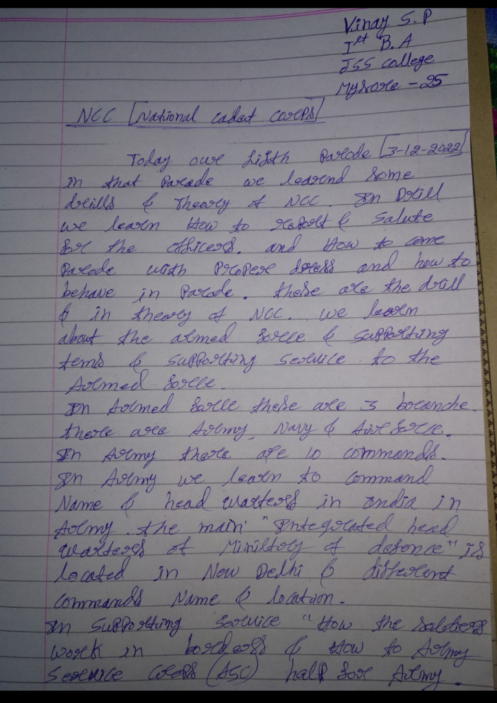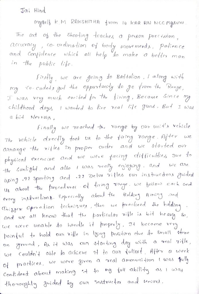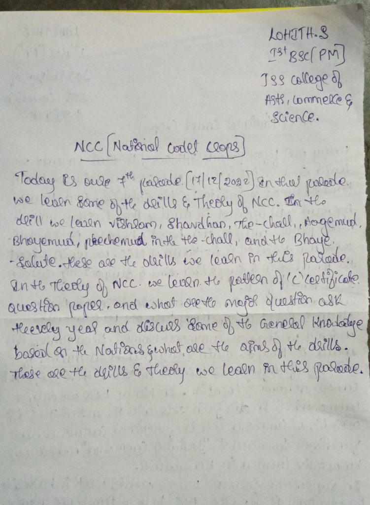 Bharath.H.J Jss college Ooty road mysore 14 th kar BN NCC