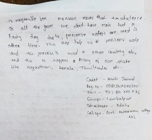Cadet- Khushi Jaiswal Reg. No -OD21SWA678170 College- Government Autonomous college, RKL