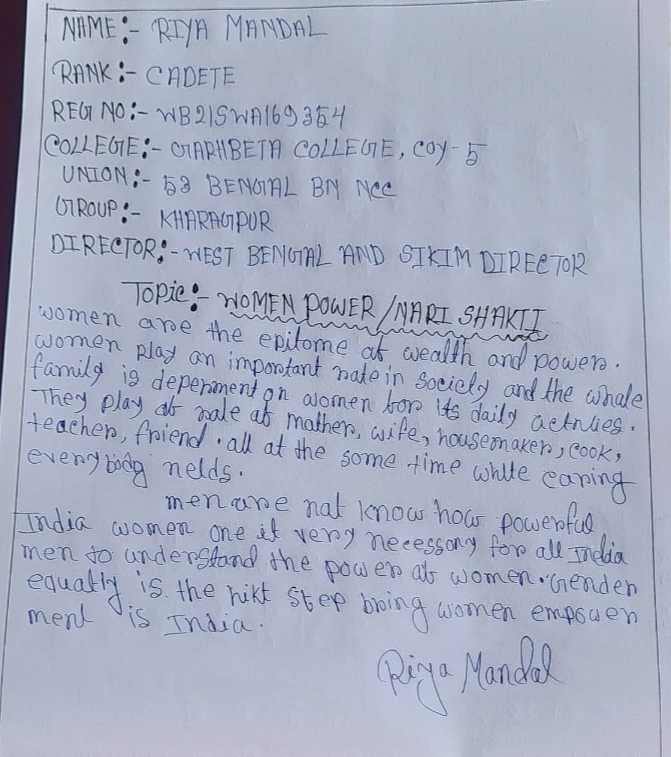 Cadet Rohit Gupta 16Bengal Bn Salesian College, Siliguri Darjeeling and Sikkim Group West Bengal and Sikkim Directorate