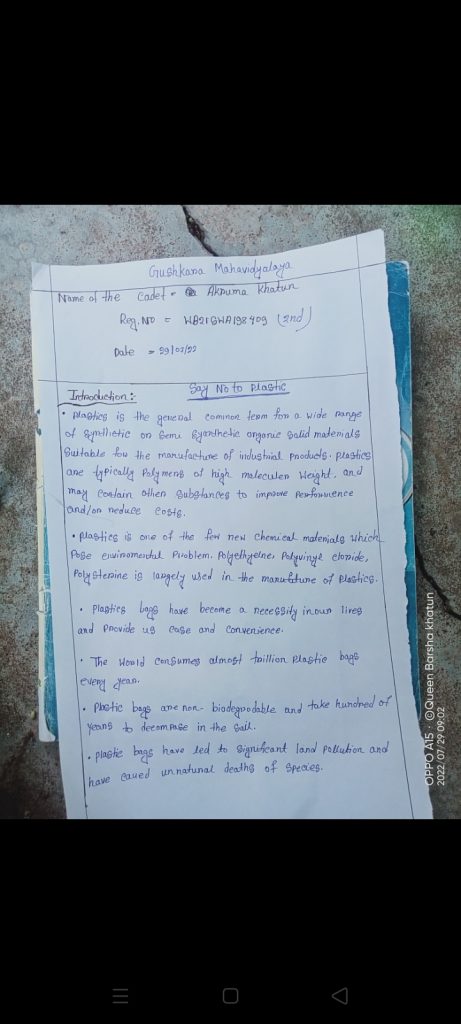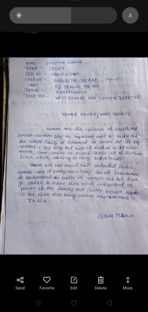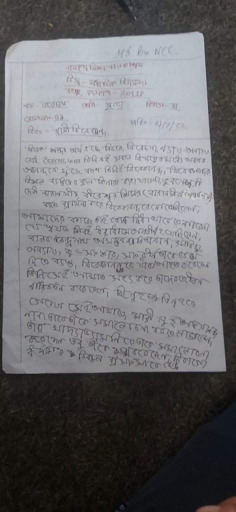 RG NO. - WB19/SDA/156569 RANK - SUO NAME - TUSHAR DEBNATH INSTITUTE - NCP MNHS UNIT - 48 BENGAL BN NCC GROUP - KALYANI