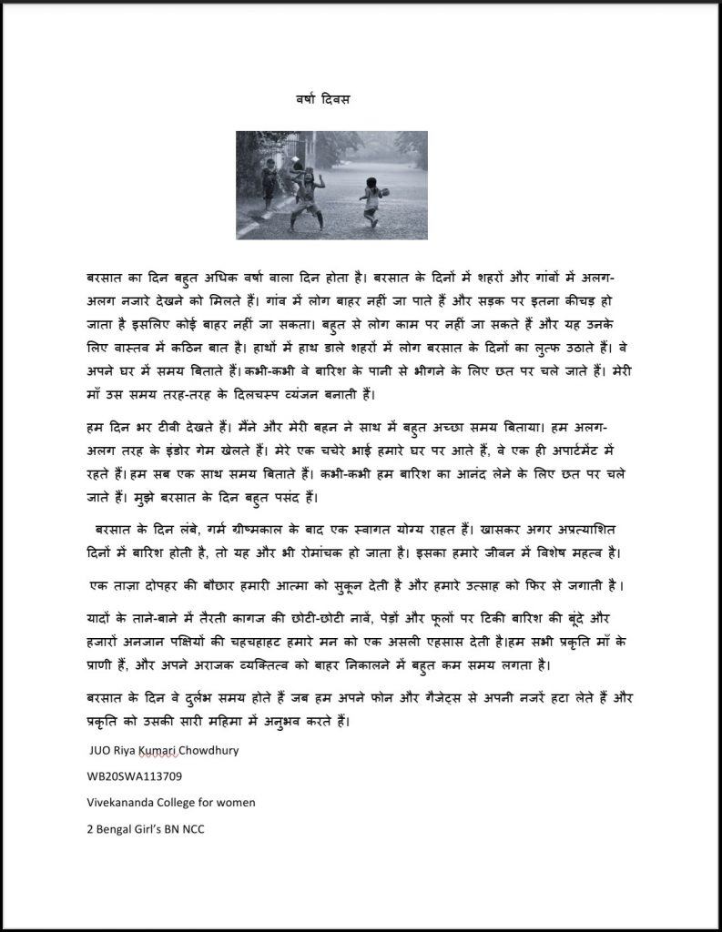 NAME - JAYANTI NAIYA, RANK - CADET, REG - WB20SWA128243, YEAR - 2ND YEAR